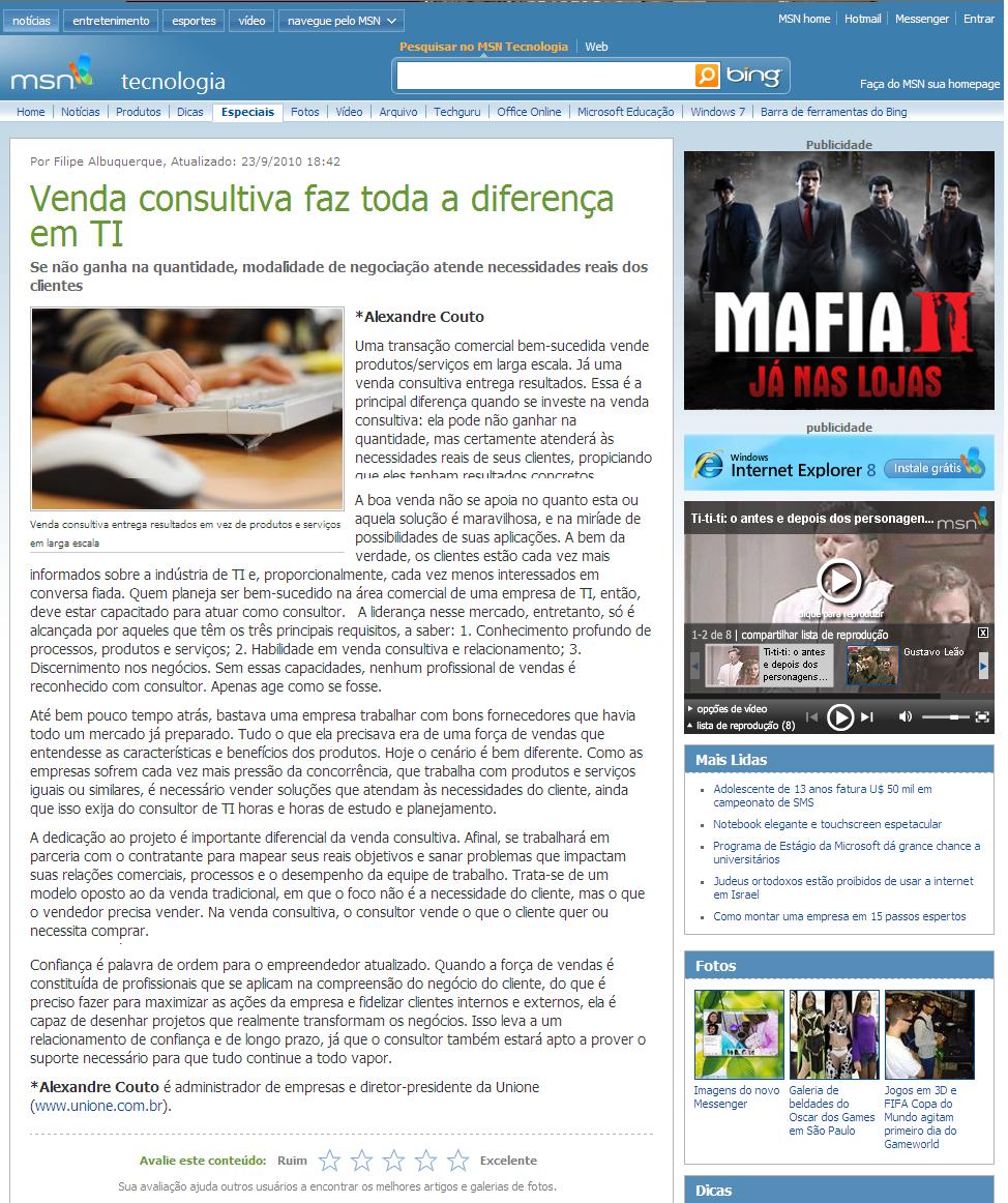 PORTAL MSN TECNOLOGIA - Venda consultiva faz toda a diferença em TI