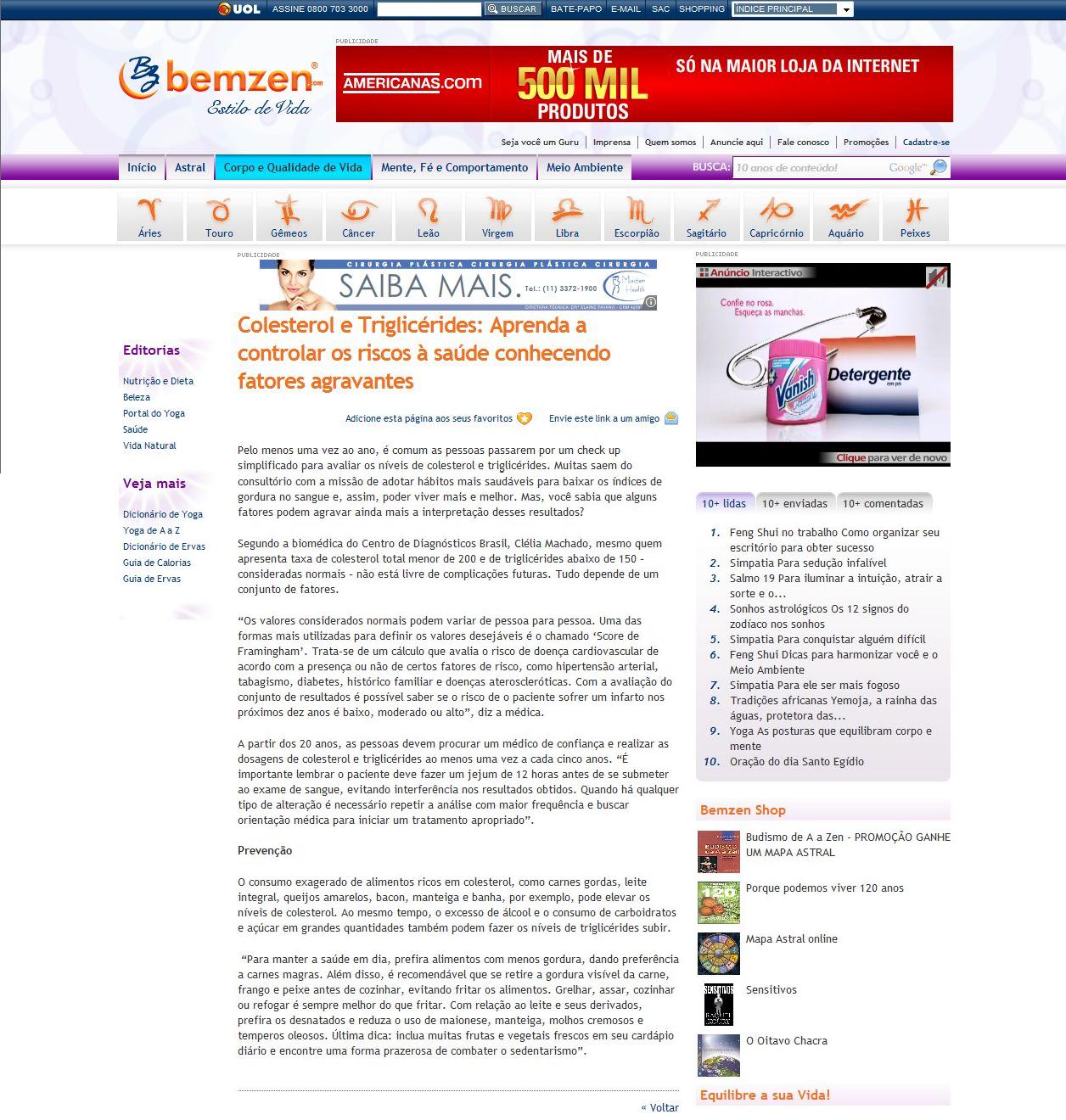 PORTAL UOL (BEMZEN) - Colesterol e triglicérides: saiba como manter a saúde