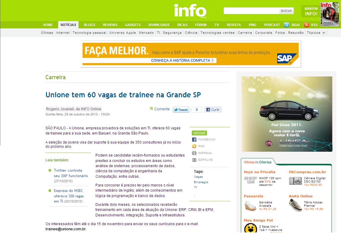 INFO ONLINE - Unione tem 60 vagas de trainee na Grande SP