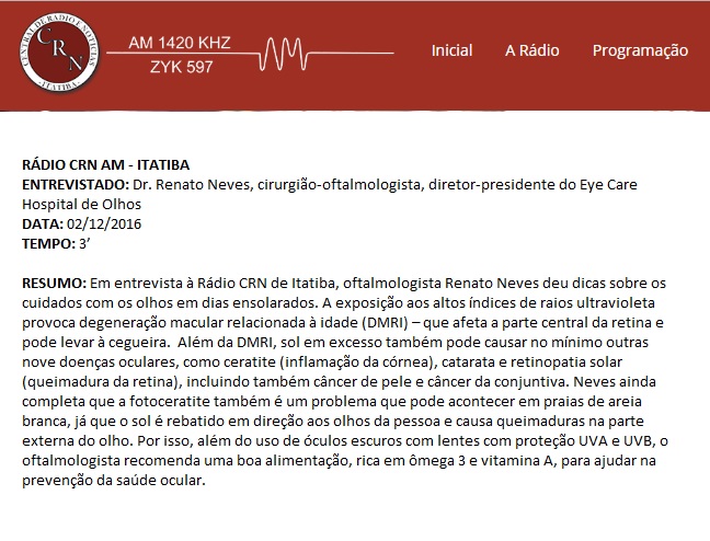RÁDIO CRN - Entrevista com Dr. Renato Neves