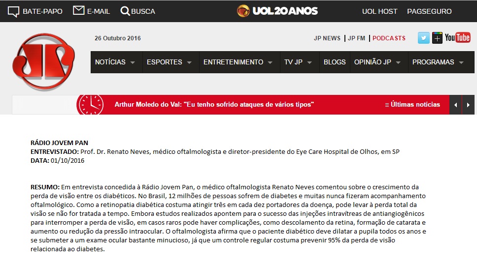 RÁDIO JOVEM PAN - Entrevista com Dr. Renato Neves