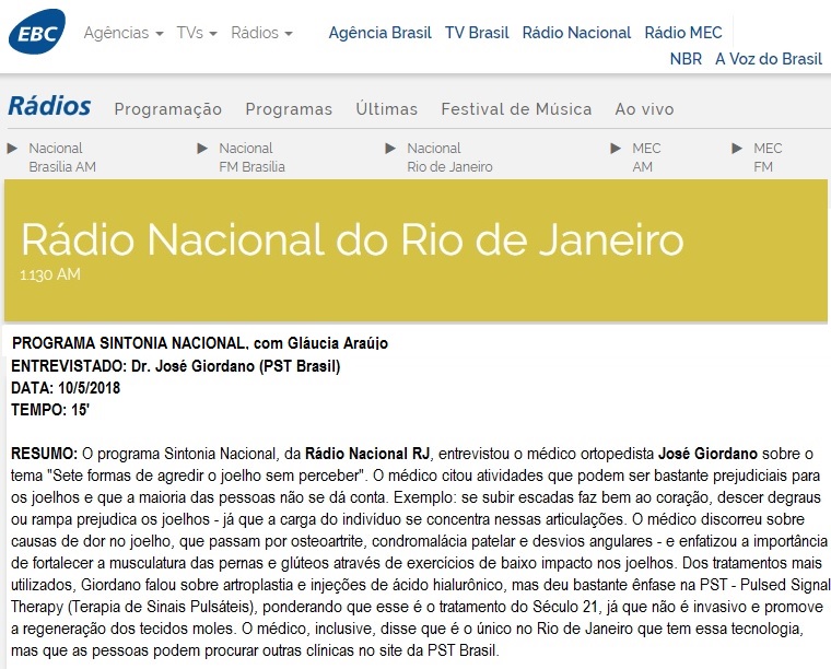 RÁDIO NACIONAL RJ - Entrevista com o ortopedista José Giordano