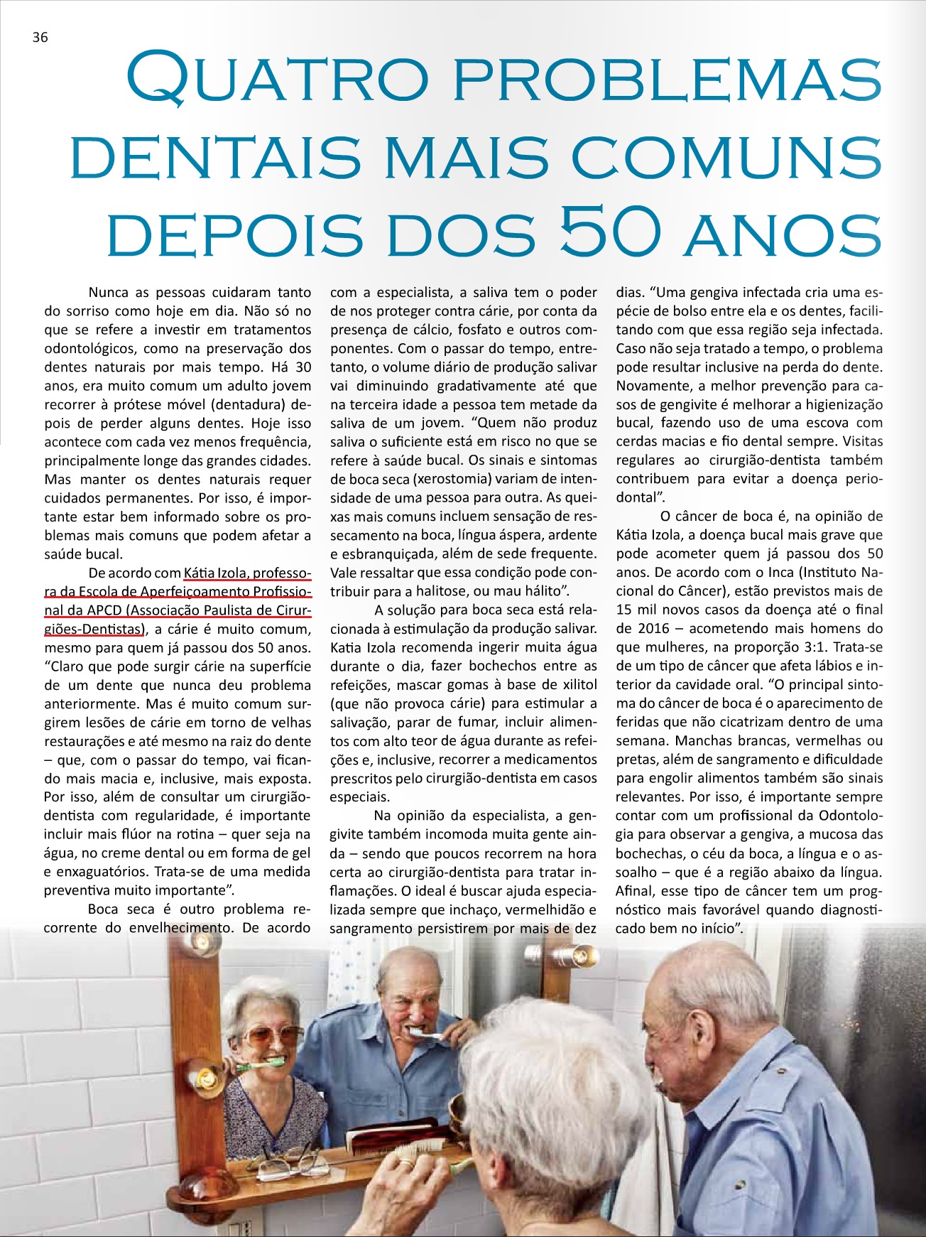 Clipping REVISTA ACONTECE (IMPRESSO) - Quatro problemas dentais mais comuns depois dos 50 anos 11/08/2016