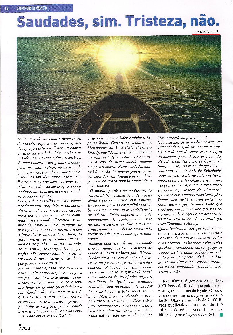 REVISTA EASYCOOP (IMPRESSO) - Saudades, sim. Tristeza, não