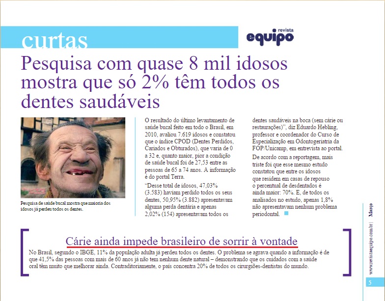 REVISTA EQUIPO - Cárie impede brasileiro de sorrir à vontade