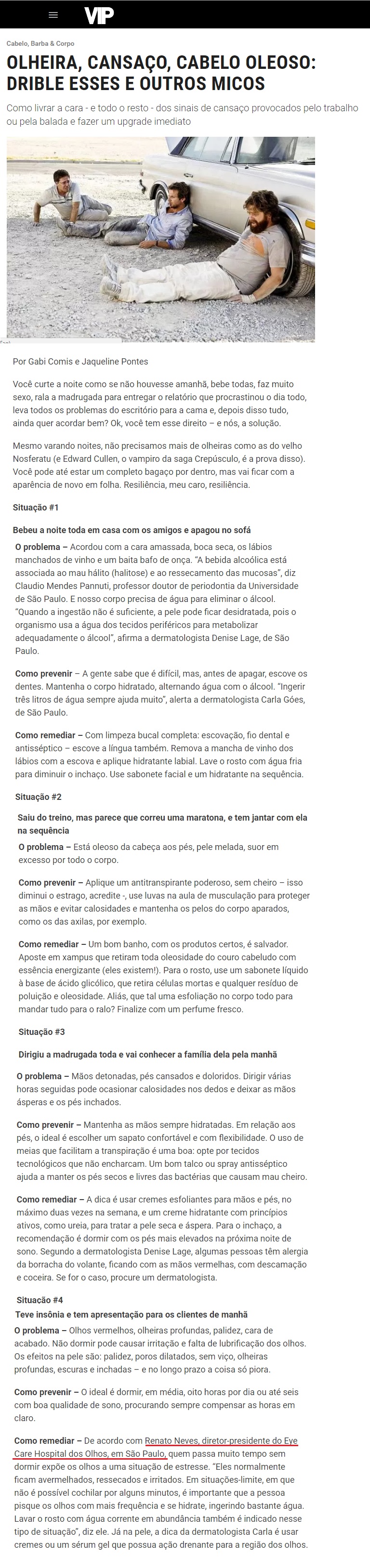 Clipping REVISTA VIP (ONLINE) - Olheira, cansaço, cabelo oleoso: drible esse e outros micos 09/11/2016