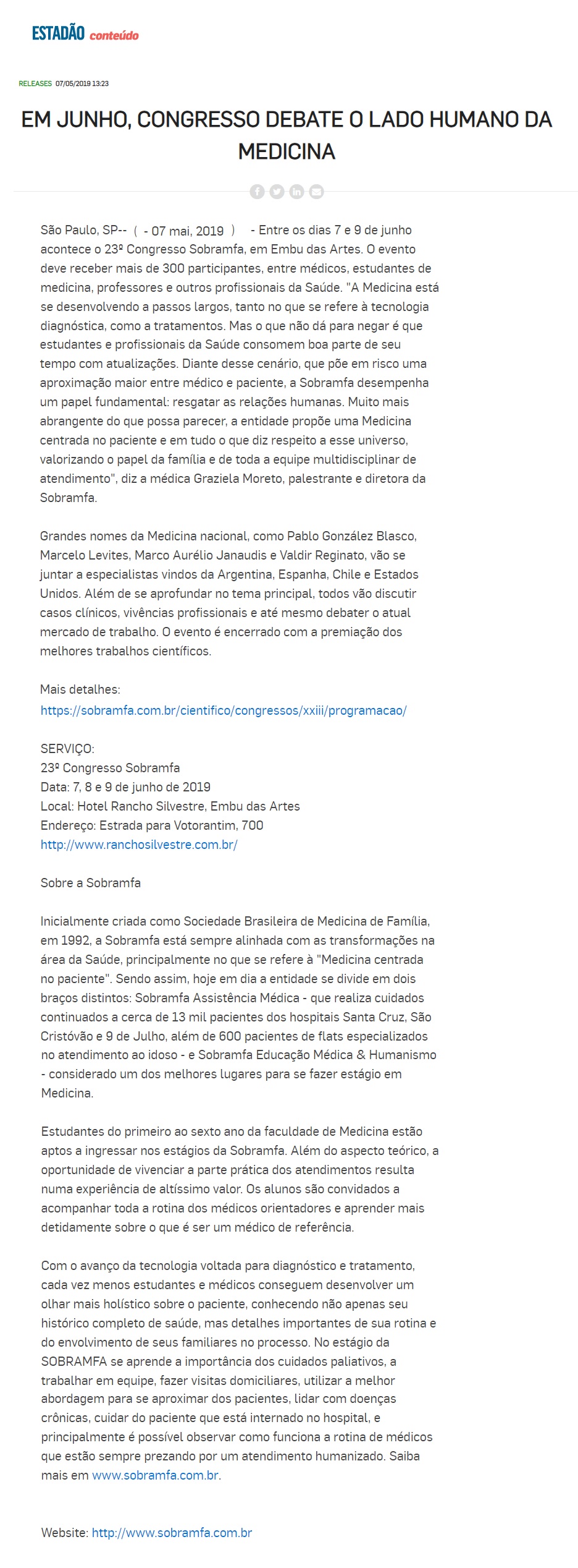 AGÊNCIA ESTADO (SITE) - Em junho, congresso debate o lado humano da Medicina