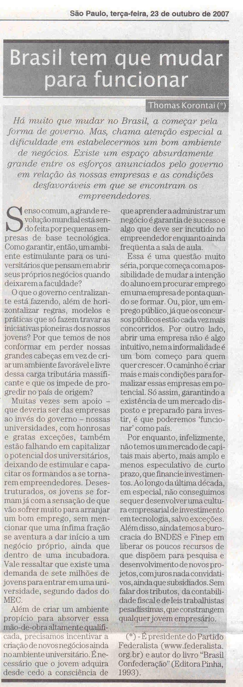 Jornal Empresas & Negócios (23 Out) - Partido Federalista