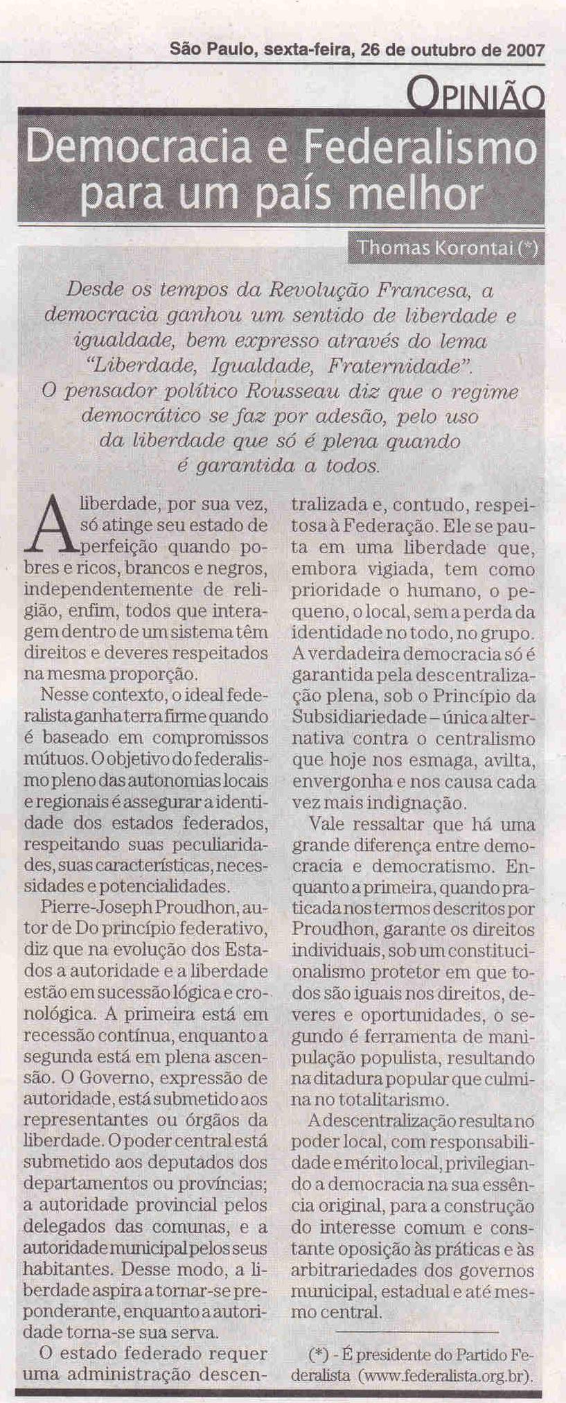 Jornal Empresas & Negócios (26 Out) - Partido Federalista