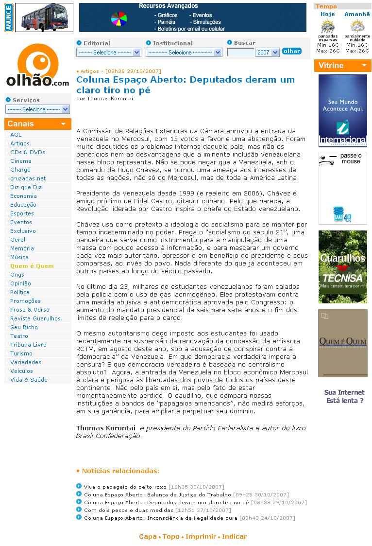 Diário de Guarulhos (impresso / on line) - Partido Federalista
