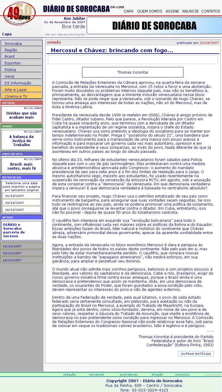 Diário de Sorocaba (impresso/on line) - Partido Federalista