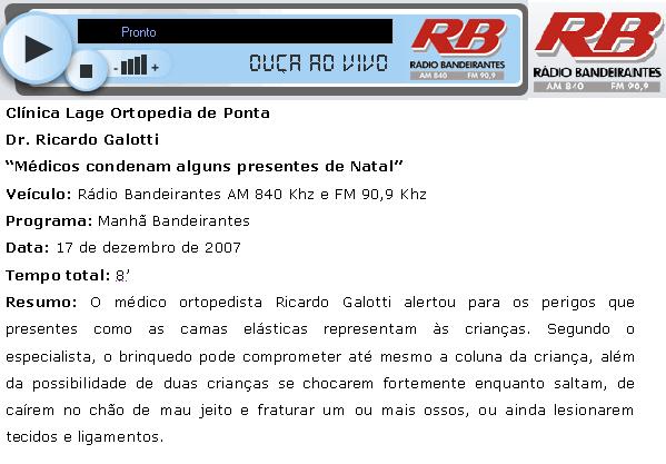 Rádio Bandeirantes AM 840 khz e FM 90,9 khz - Dr. Ricardo Galotti