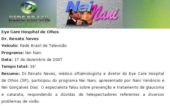 Rede Brasil de Televisão - Eye Care Hospital de Olhos