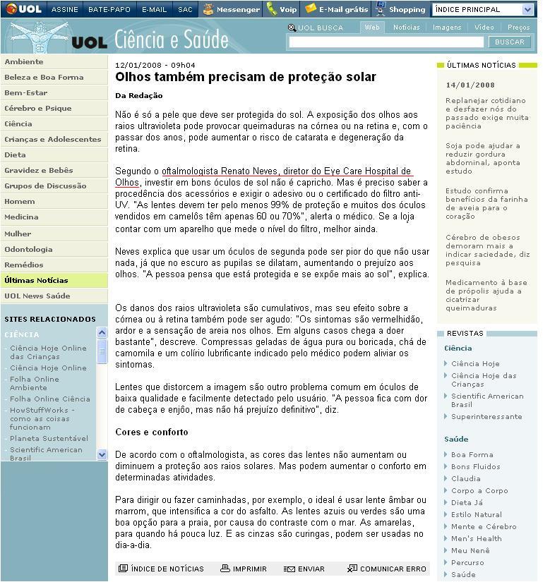 Portal UOL (Ciência & Saúde) - Eye Care Hospital de Olhos