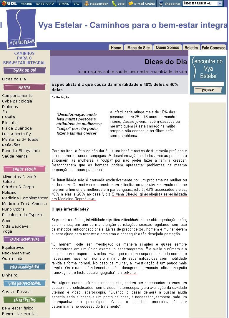 Portal UOL (Ciência & Saúde) - Dra. Silvana Chedid