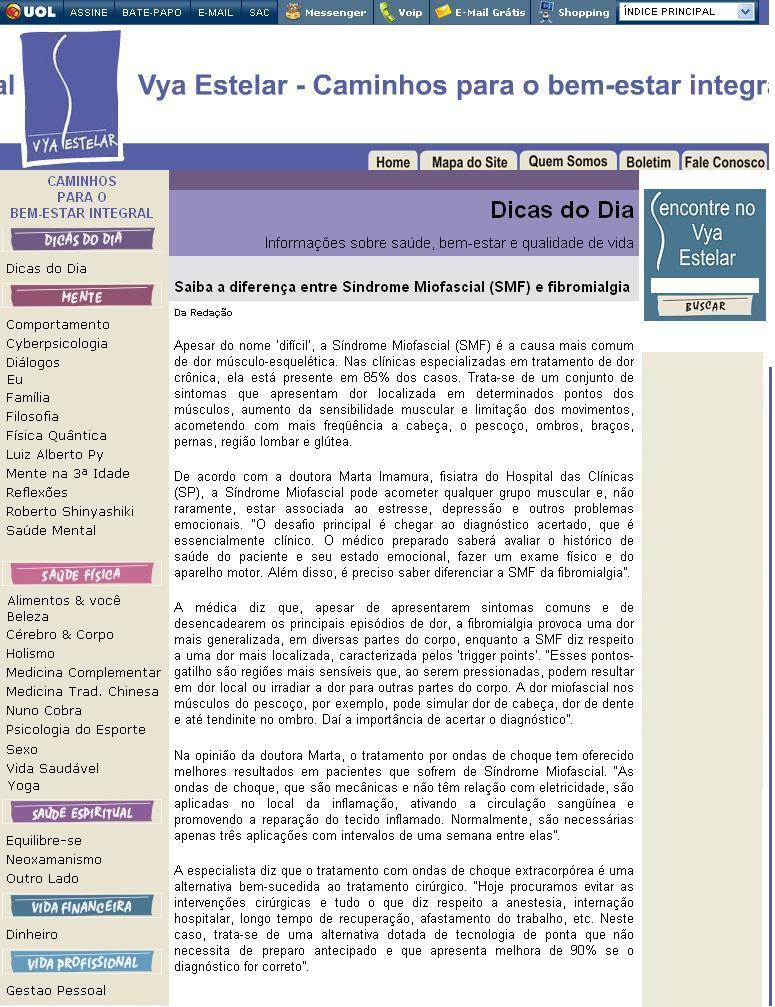 Portal UOL (Ciência & Saúde) - Dra. Marta Imamura