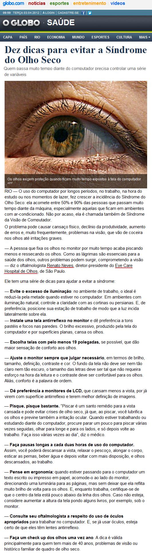 O GLOBO ONLINE - Dez dicas para evitar a síndrome do olho seco