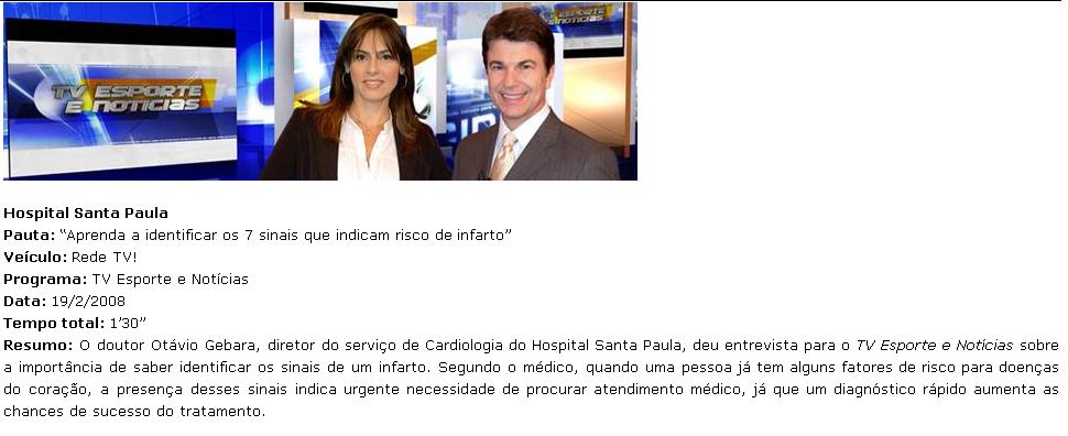 TV Esporte e Notícias (Rede TV) - Hospital Santa Paula
