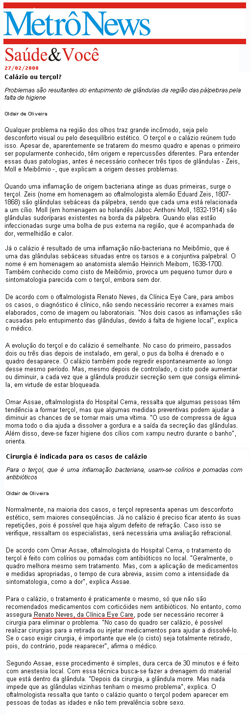 Jornal Metrô News (27 Fev) - Eye Care Hospital de Olhos