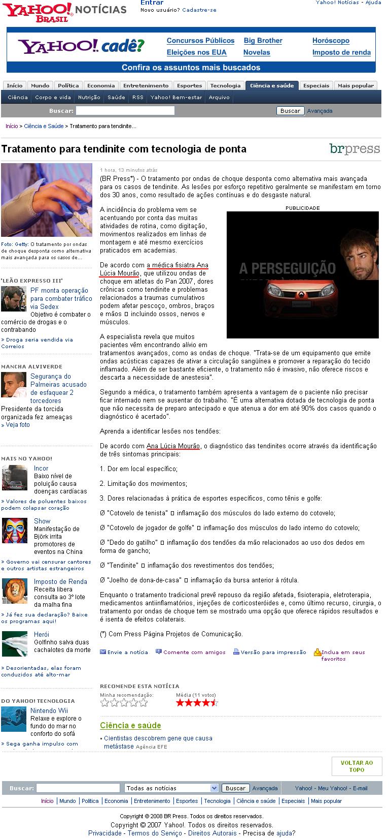 Portal Yahoo (Chamada de capa) - Dra.Ana Lúcia Mourão