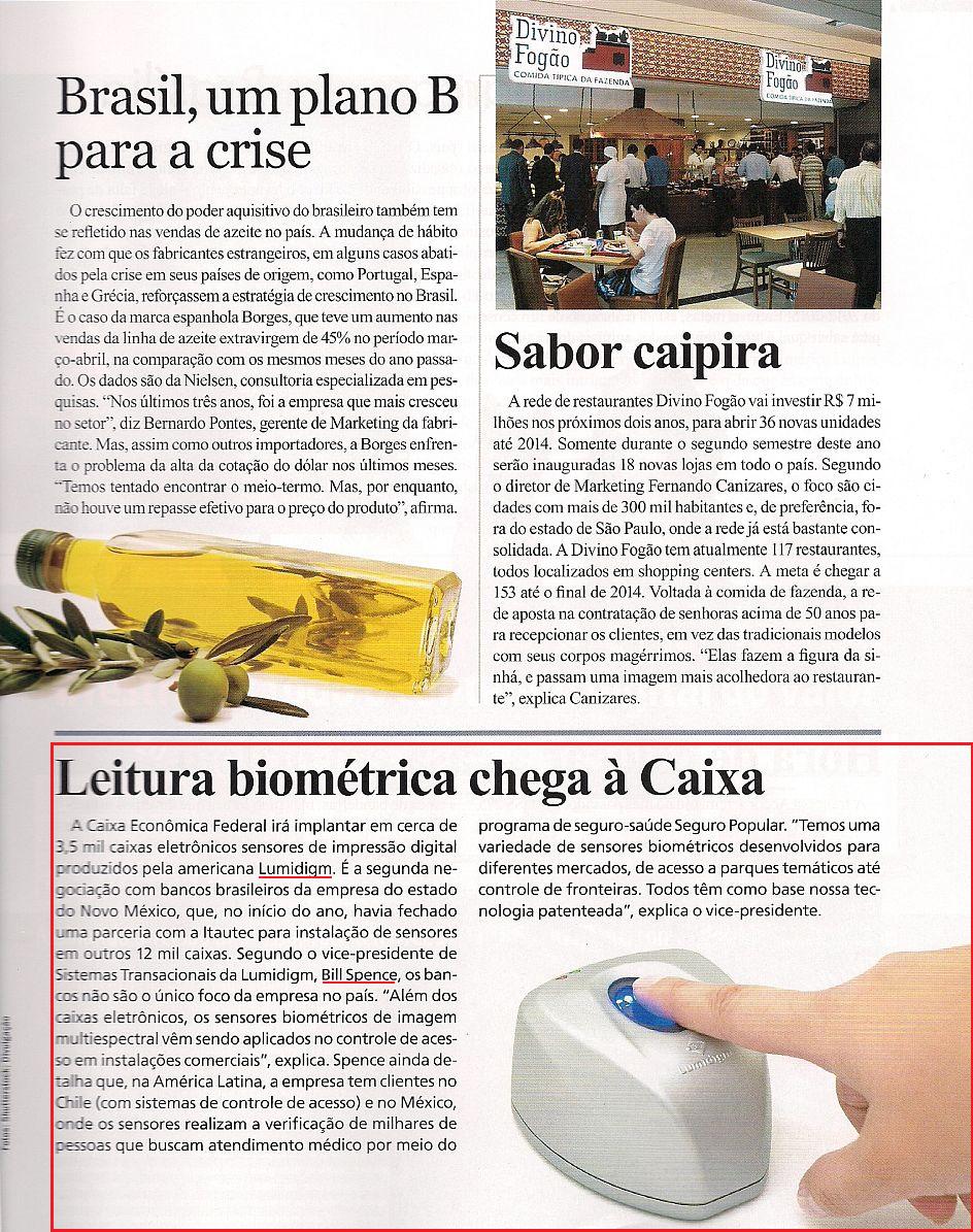 REVISTA AMÉRICA ECONOMIA - Leitura biométrica chega à Caixa