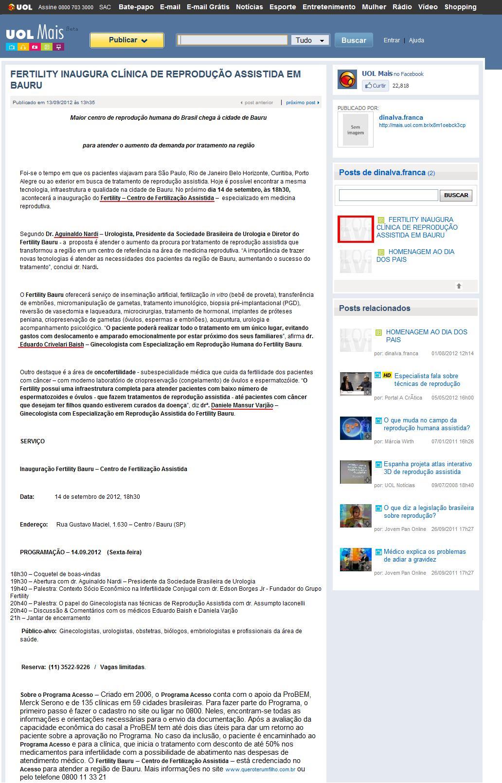 UOL MAIS - Fertility inaugura clínica de fertilização assistida em Bauru