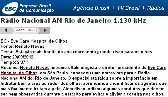 Clipping RÁDIO NACIONAL DO RIO DE JANEIRO - Estação mais bonita do ano representa grande risco para os olhos 24/09/2012