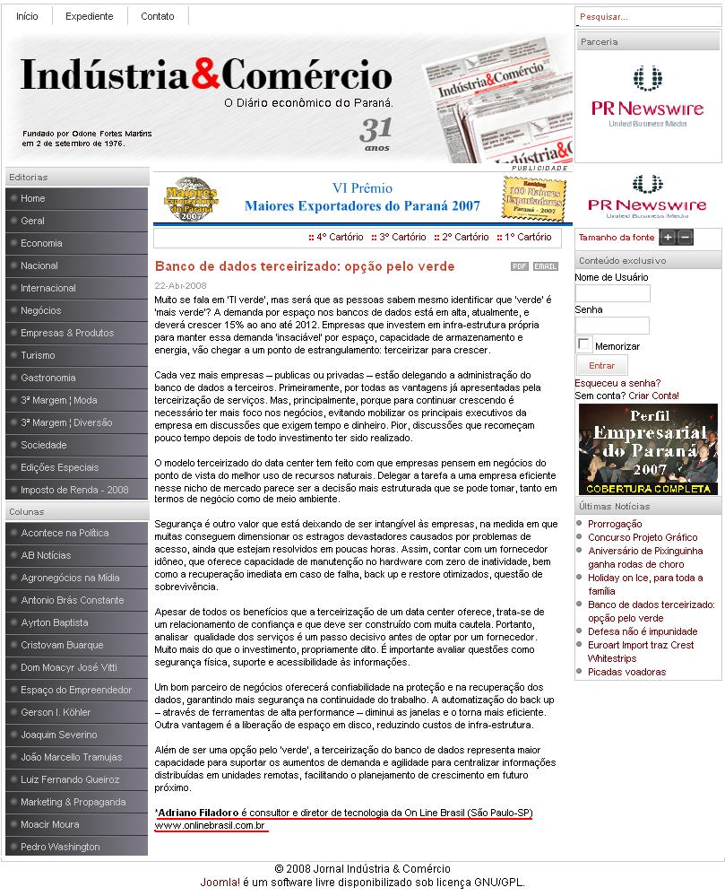 Jornal Indústria & Comércio (23 Abr) - On Line Brasil