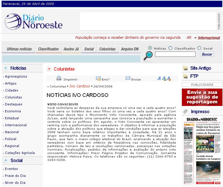 Diário do Noroeste (26 Abr) - Movimento Voto Consciente