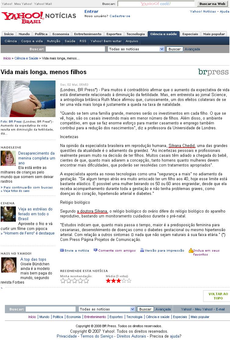 Portal Yahoo - Dra. Silvana Chedid