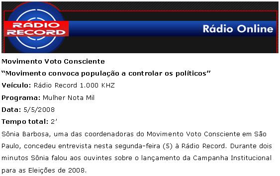 Rádio Record 1.000 KHZ - Movimento Voto Consciente