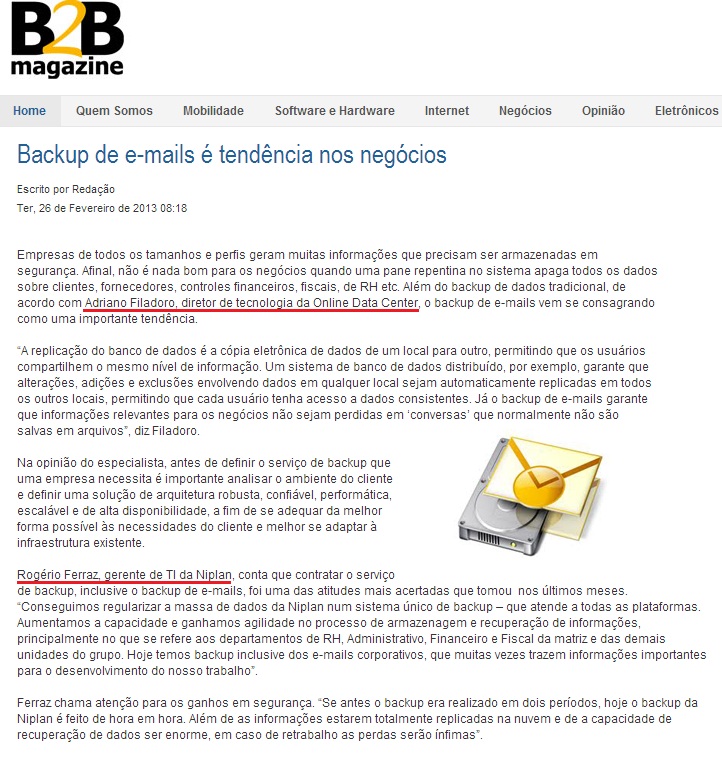 REVISTA B2B MAGAZINE (0NLINE) - Backup de e-mails é tendência nos negócios