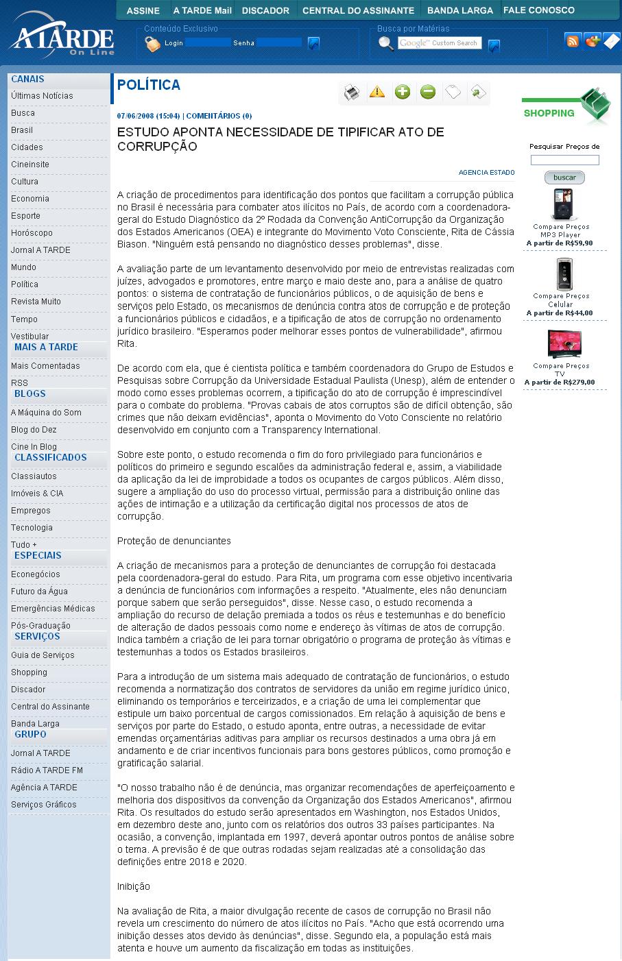 A Tarde on line (Salvador - BA) - Movimento Voto Consciente