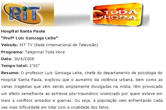 RIT TV (Telejornal Toda Hora) - Hospital Santa Paula