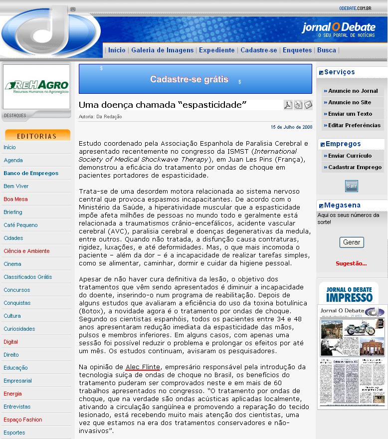 Jornal O Debate (15 Jul) - Uma doença chamada espasticidade