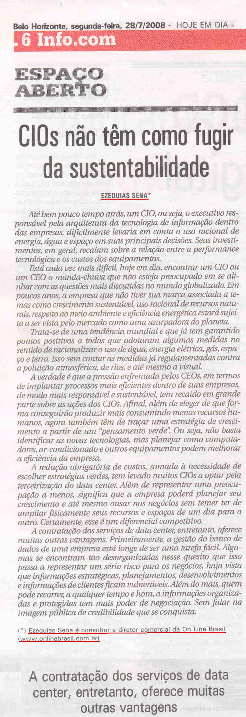 Jornal Hoje em Dia - MG - (28 Jul) - CIOs não têm como fugir da sustentabilidade