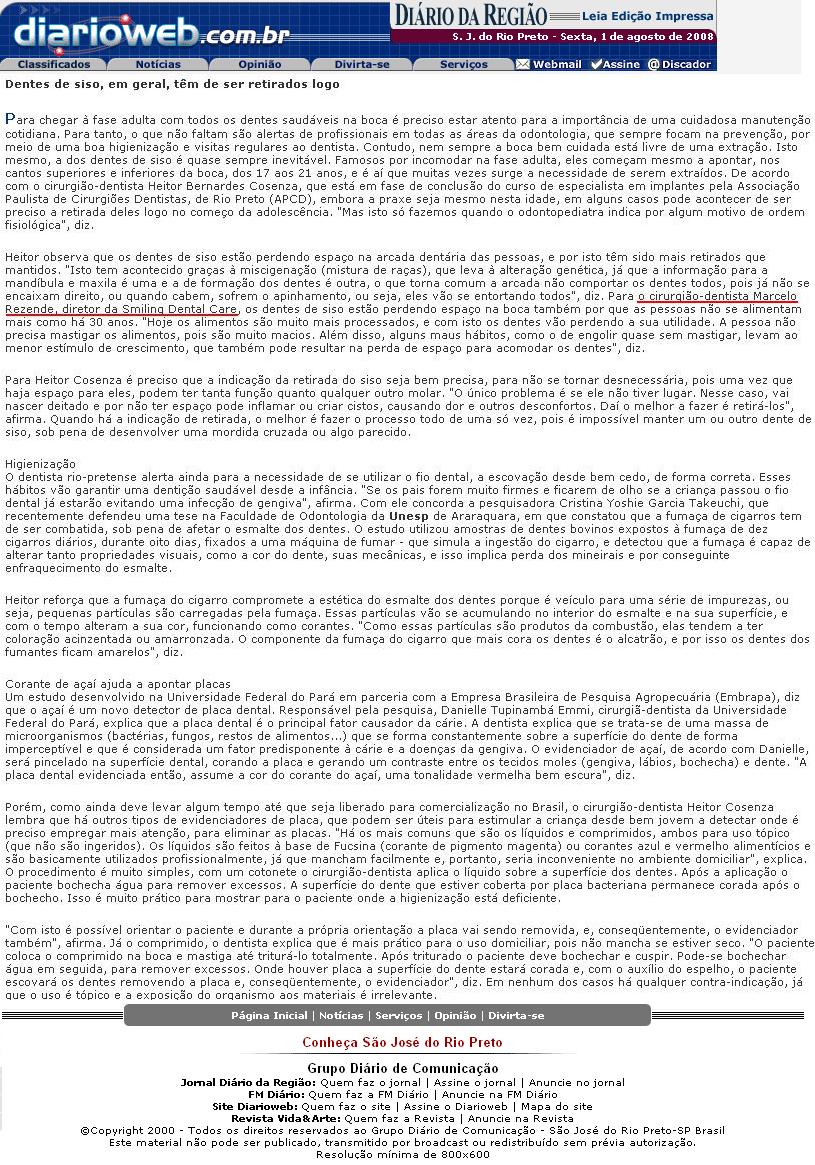 Clipping Diário da Região - S.J. do Rio Preto - Dentes do siso, em geral, têm de ser retirados logo 11/08/2008