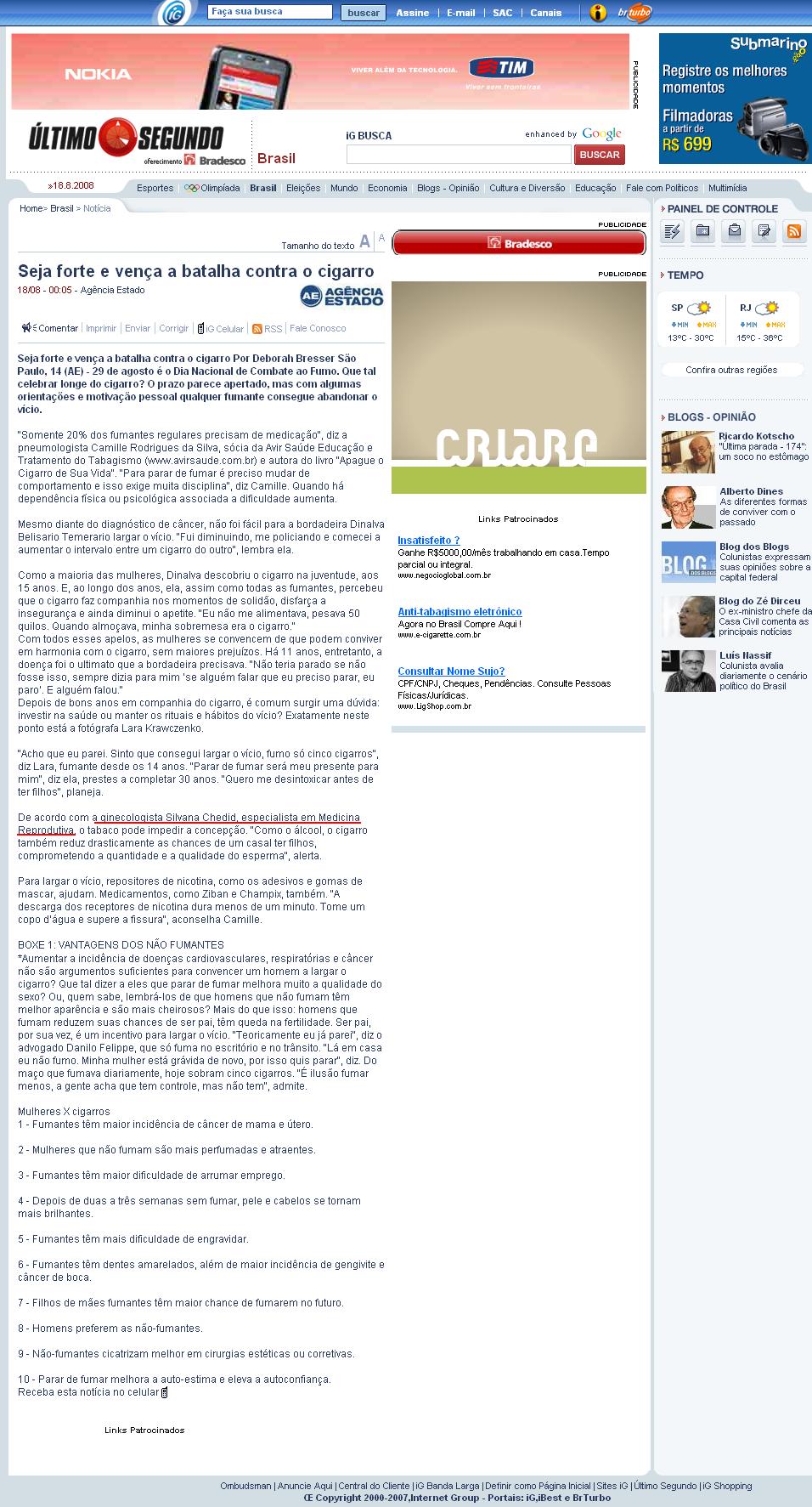 Portal IG (Último Segundo) - Seja forte e vença a batalha contra o cigarro