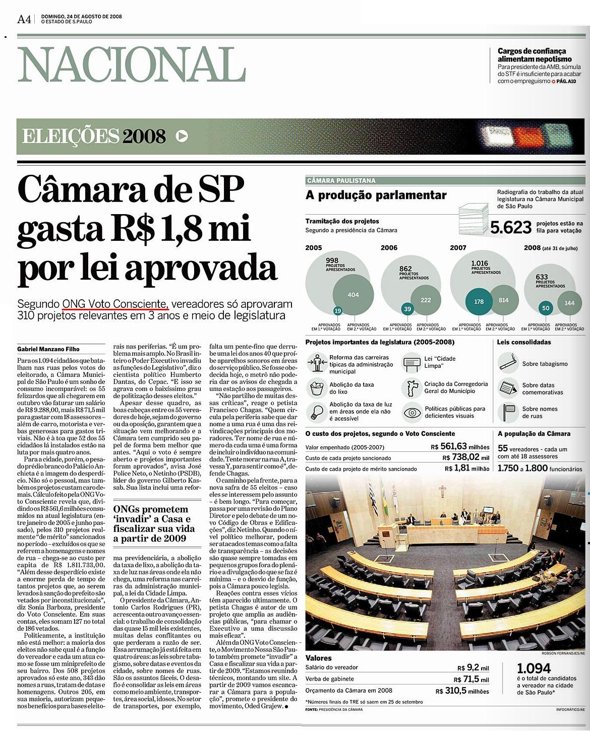 O Estado de S. Paulo (24 Ago) - Câmara de SP gasta R$ 1,8 mi por lei aprovada