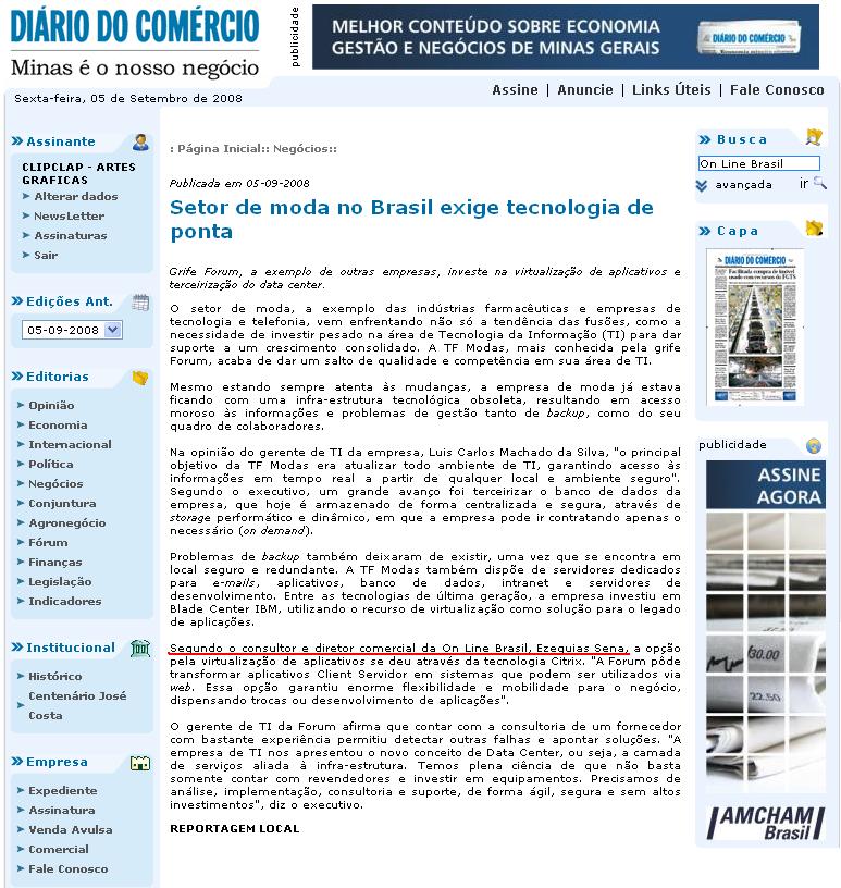 Diário do Comércio - MG (5 Set) - Setor de moda exige tecnologia de ponta