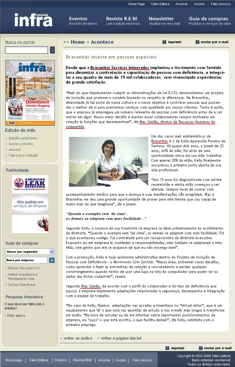 Site Revista Infra - Brasanitas investe em pessoas especiais
