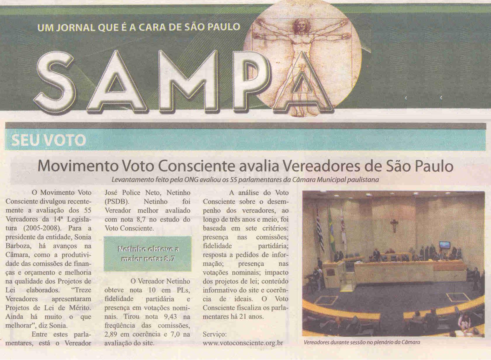 Jornal Sampa (SET) - Movimento Voto Consciente avalia vereadores de São Paulo