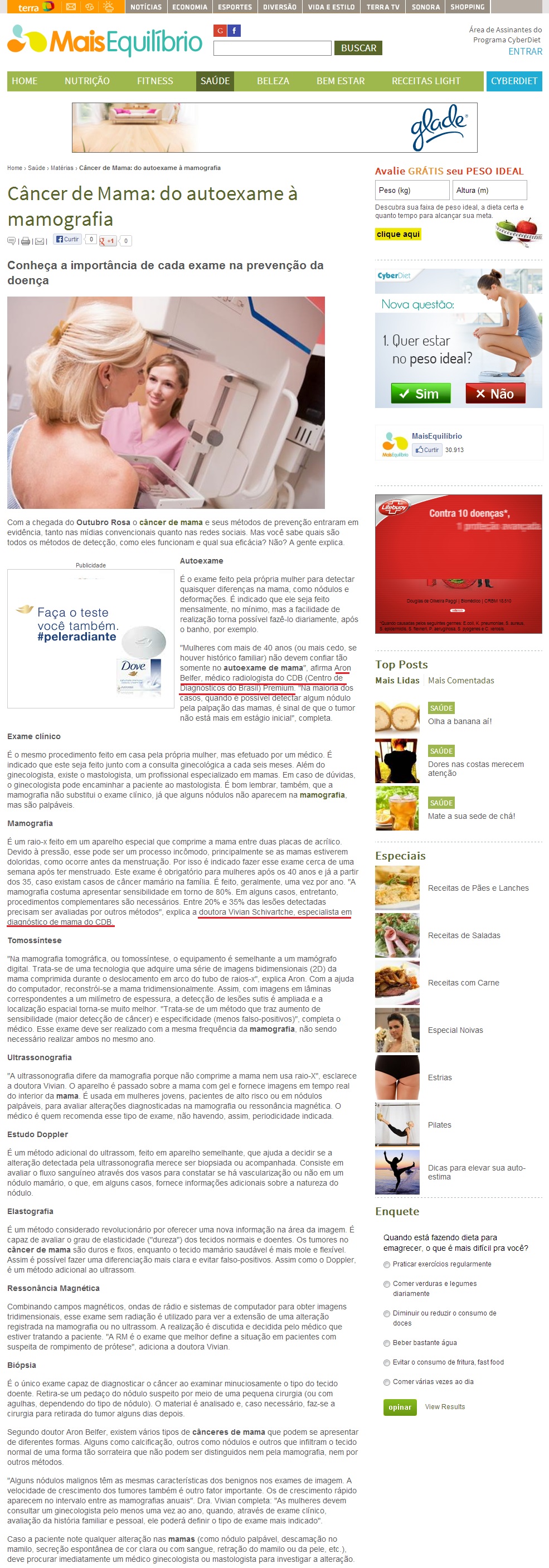 PORTAL MAIS EQUILÍBRIO (TERRA) - Câncer de Mama: do autoexame à mamografia