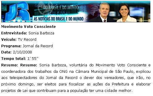 TV Record (Jornal da Record) - Movimento Voto Consciente