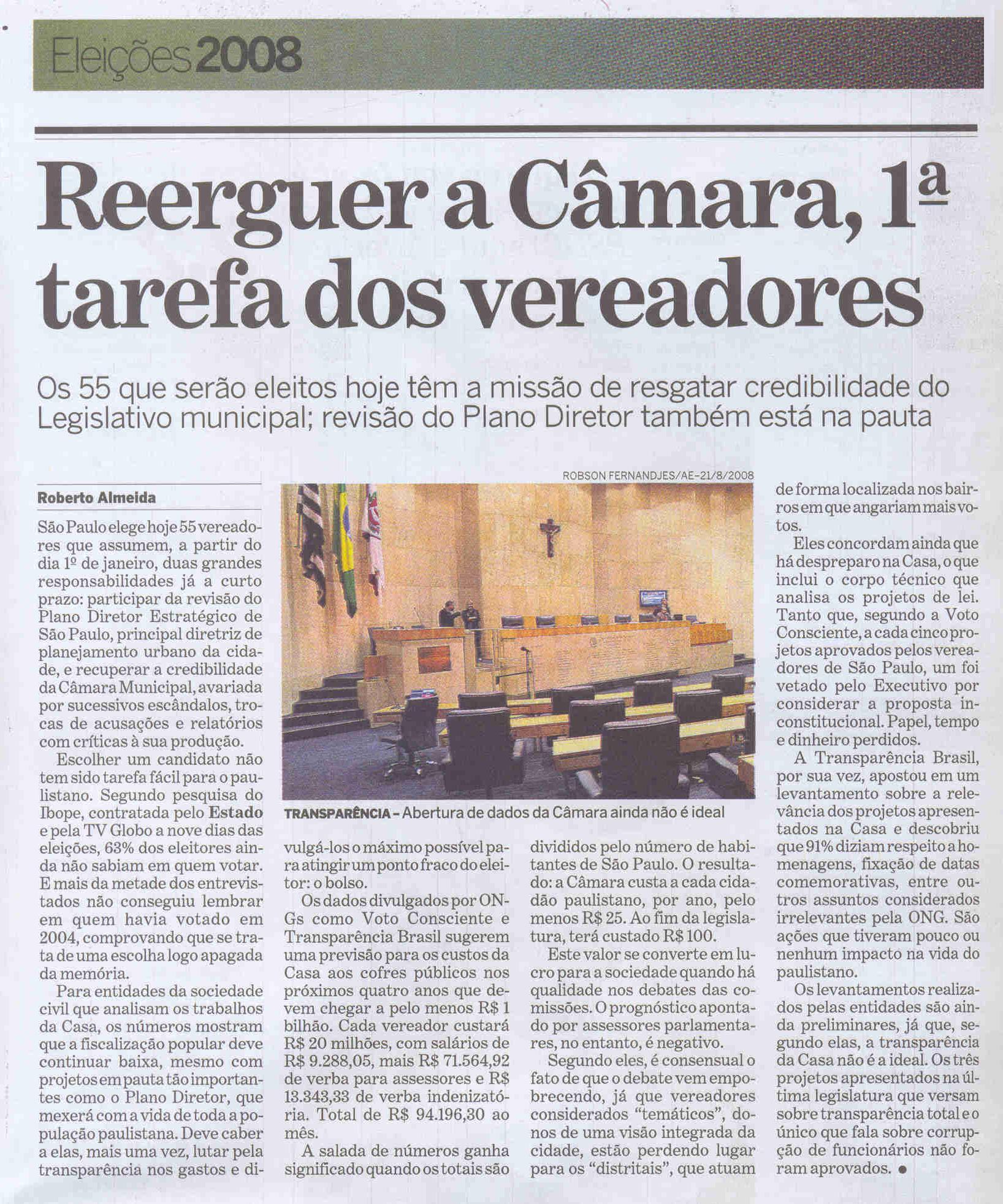 O Estado de S. Paulo (5 Out) - Reerguer a Câmara, 1º tarefa dos vereadores