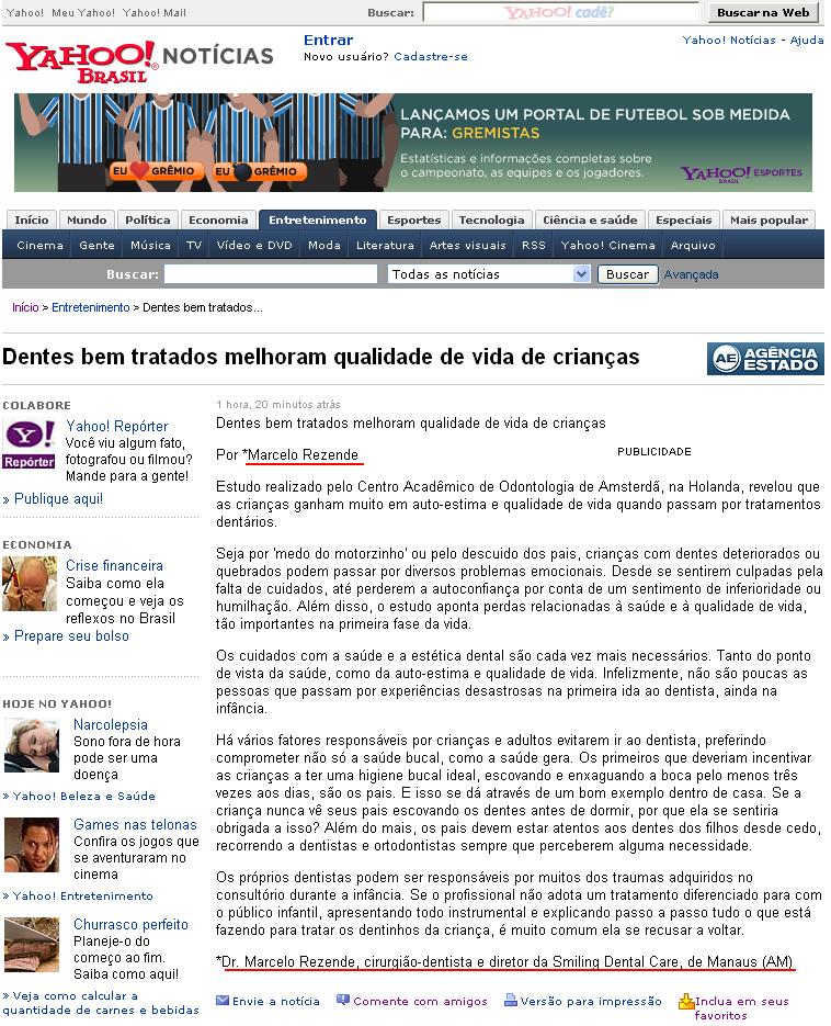 Portal Yahoo - Dentes bem tratados melhoram qualidade de vida de crianças
