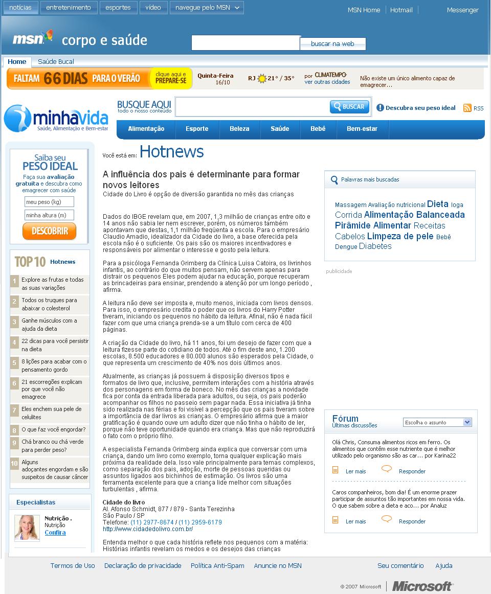 Portal MSN - A influência dos pais é determinante para formar novos leitores