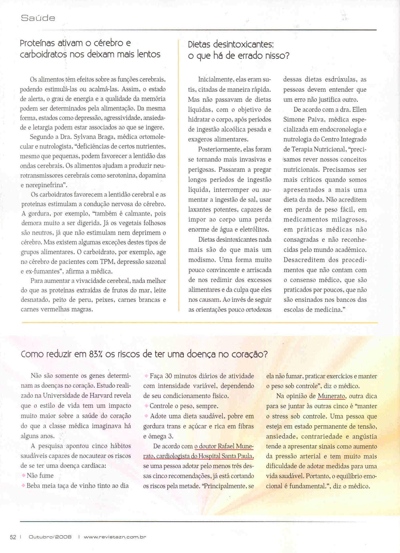 Clipping Revista Zona Norte (SP) - Como reduzir em 83% os riscos de ter uma doença no coração? 20/10/2008