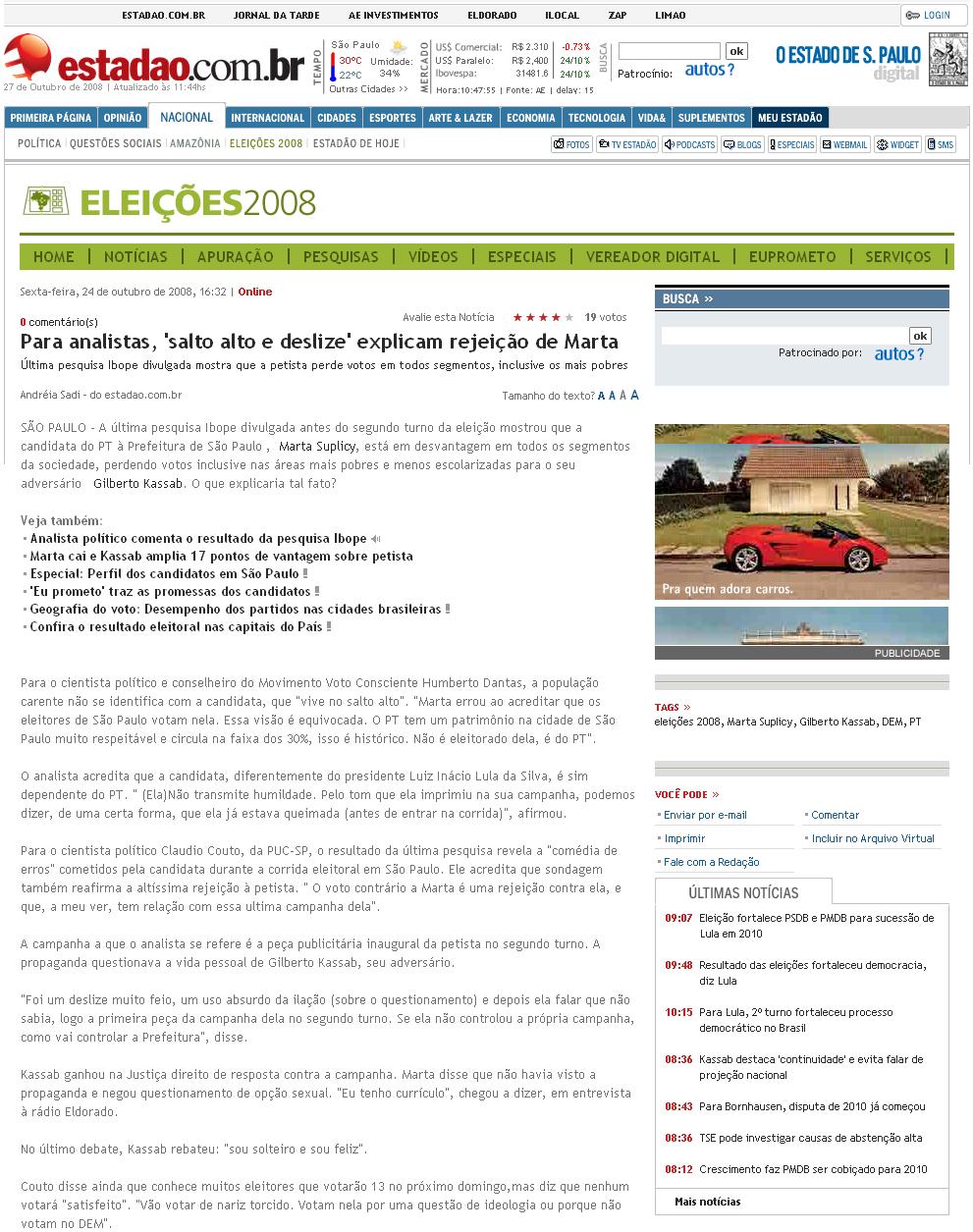 Portal Estadão - Para analistas, salto alto e deslize explicam rejeição de Marta