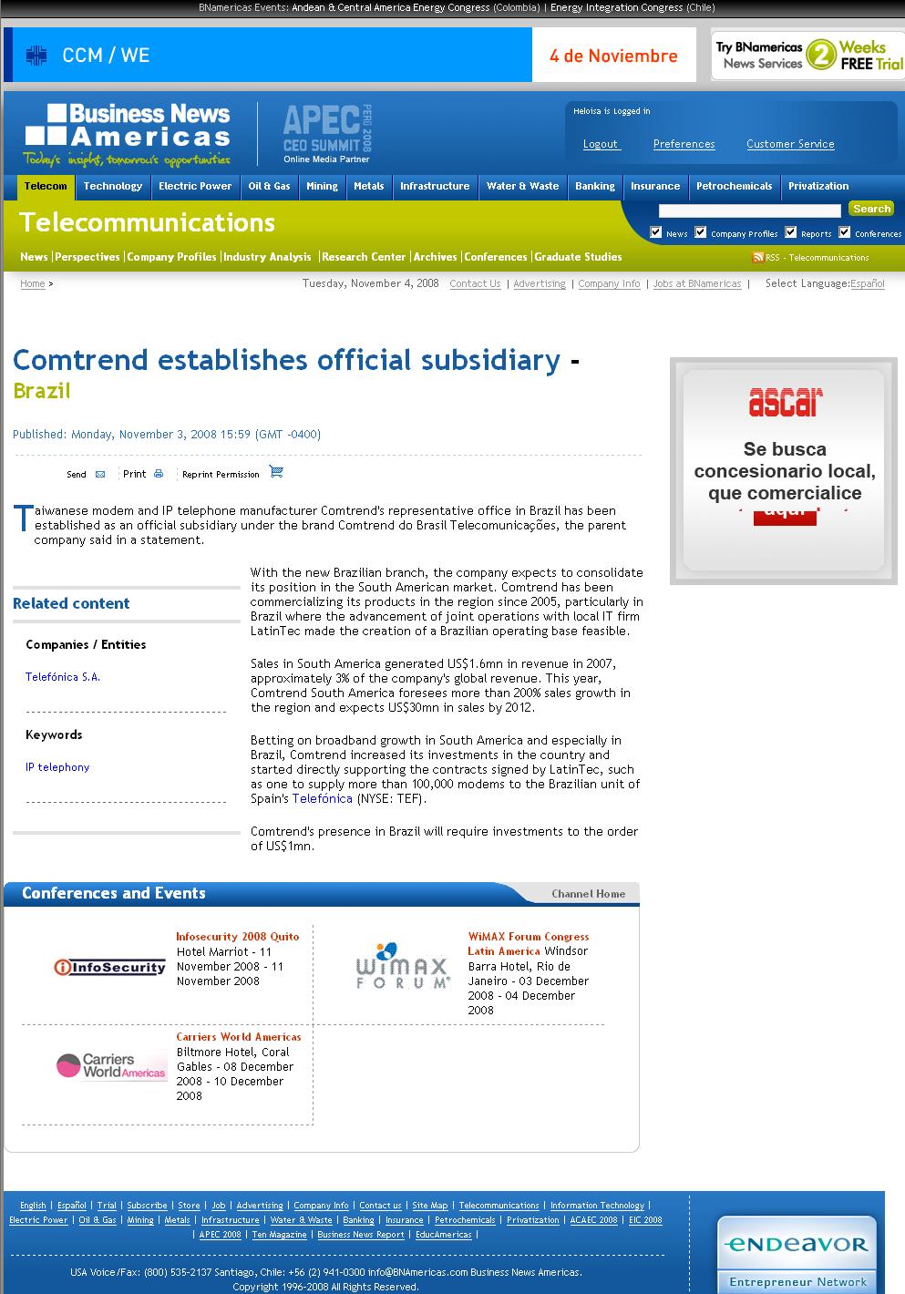 Business New Americas - Comtrend establishes official subsidiary